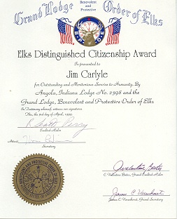 Citizenship Award" by Angola, Indiana Lodge No. 2398 and the